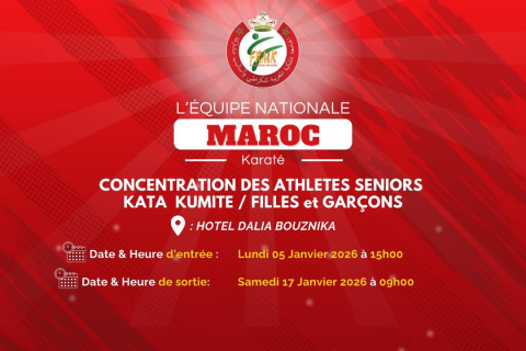 La Fédération Royale Marocaine de Karaté et Disciplines Associées organise une concentration de l’équipe nationale de karaté, du 5 au 17 janvier 2026, à Bouznika.