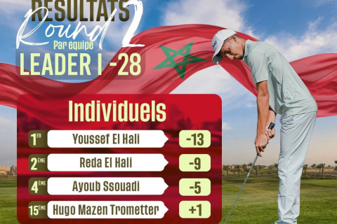 À ce jour, l’équipe marocaine conserve la tête du Pan Arab Men Championship 2025 à l’issue du deuxième tour, avec un total de -28 au Riyadh Golf Club!