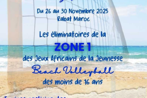 L’équipe nationale de beach volley participe aux éliminatoires des Jeux Africains de la Jeunesse – CAVB Zone 1 (BVB U16), organisés au Maroc du 26 au 30 novembre 2025.